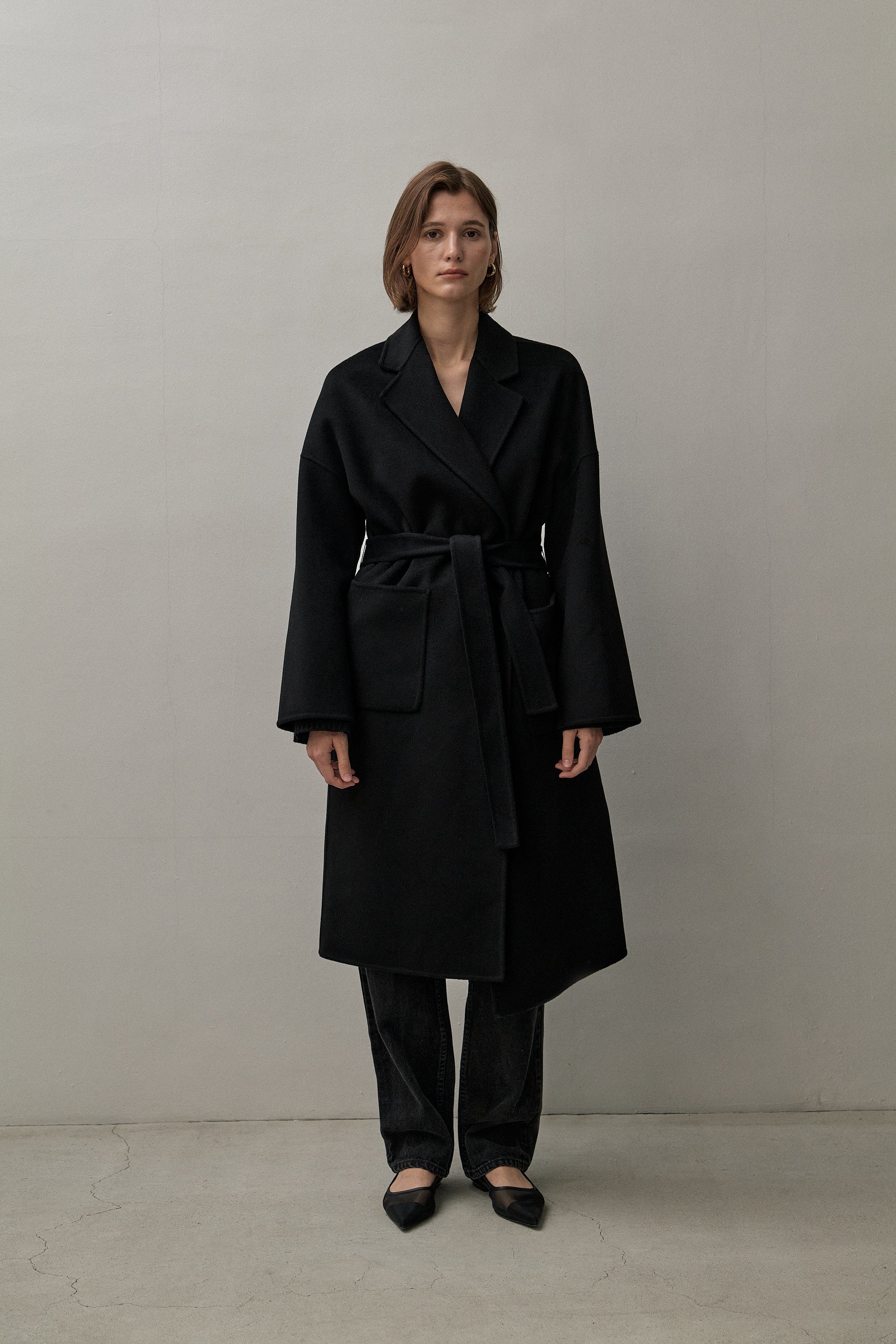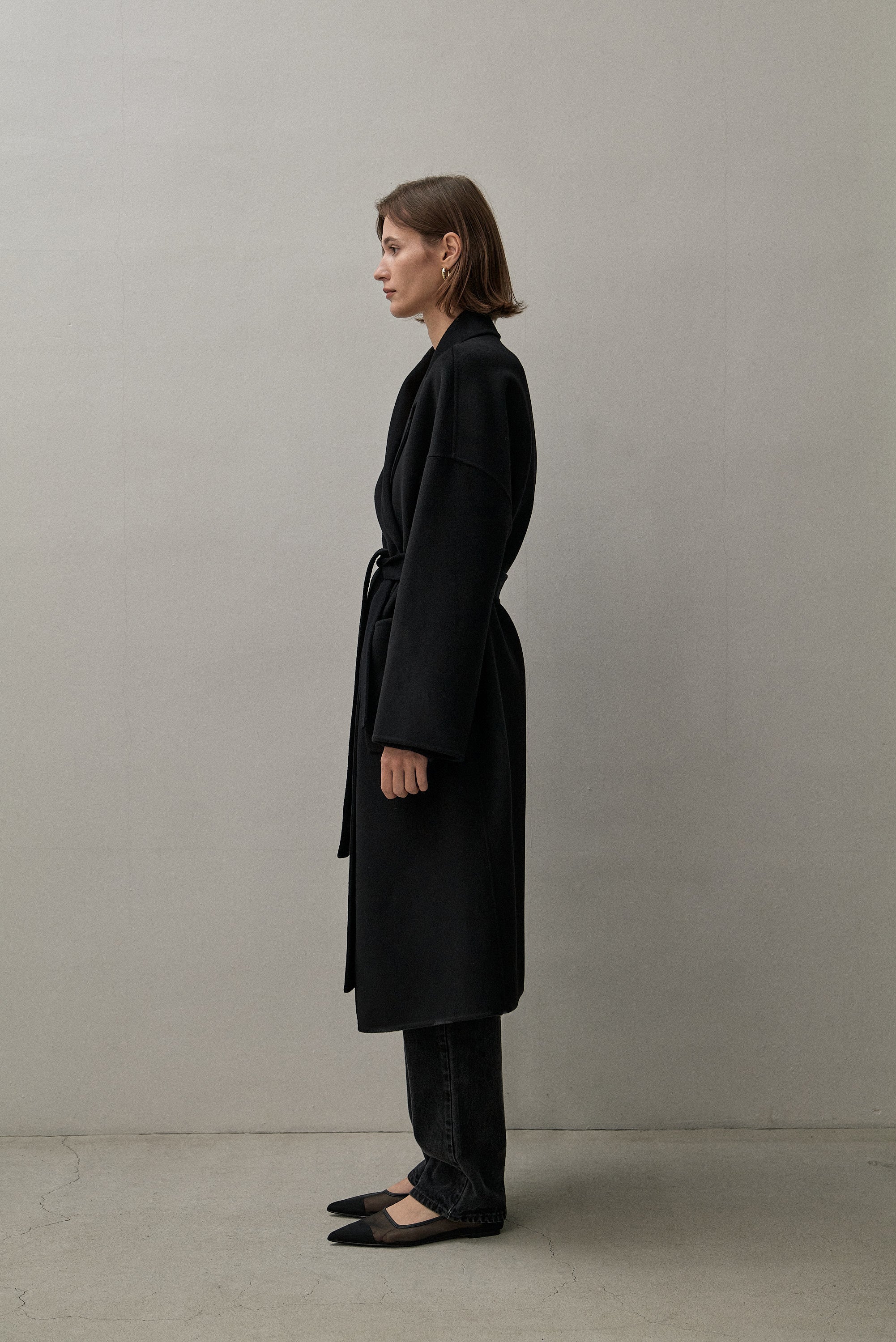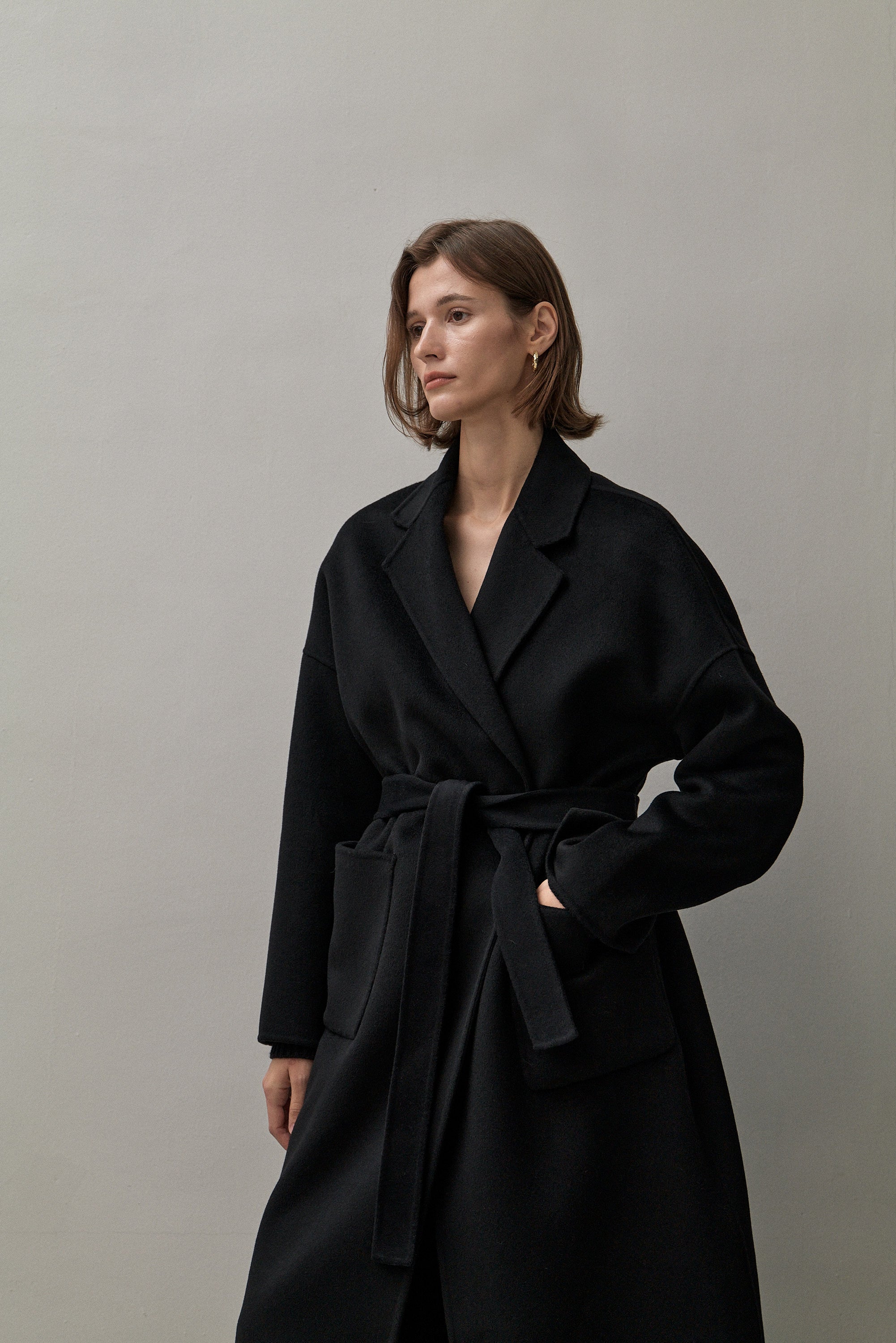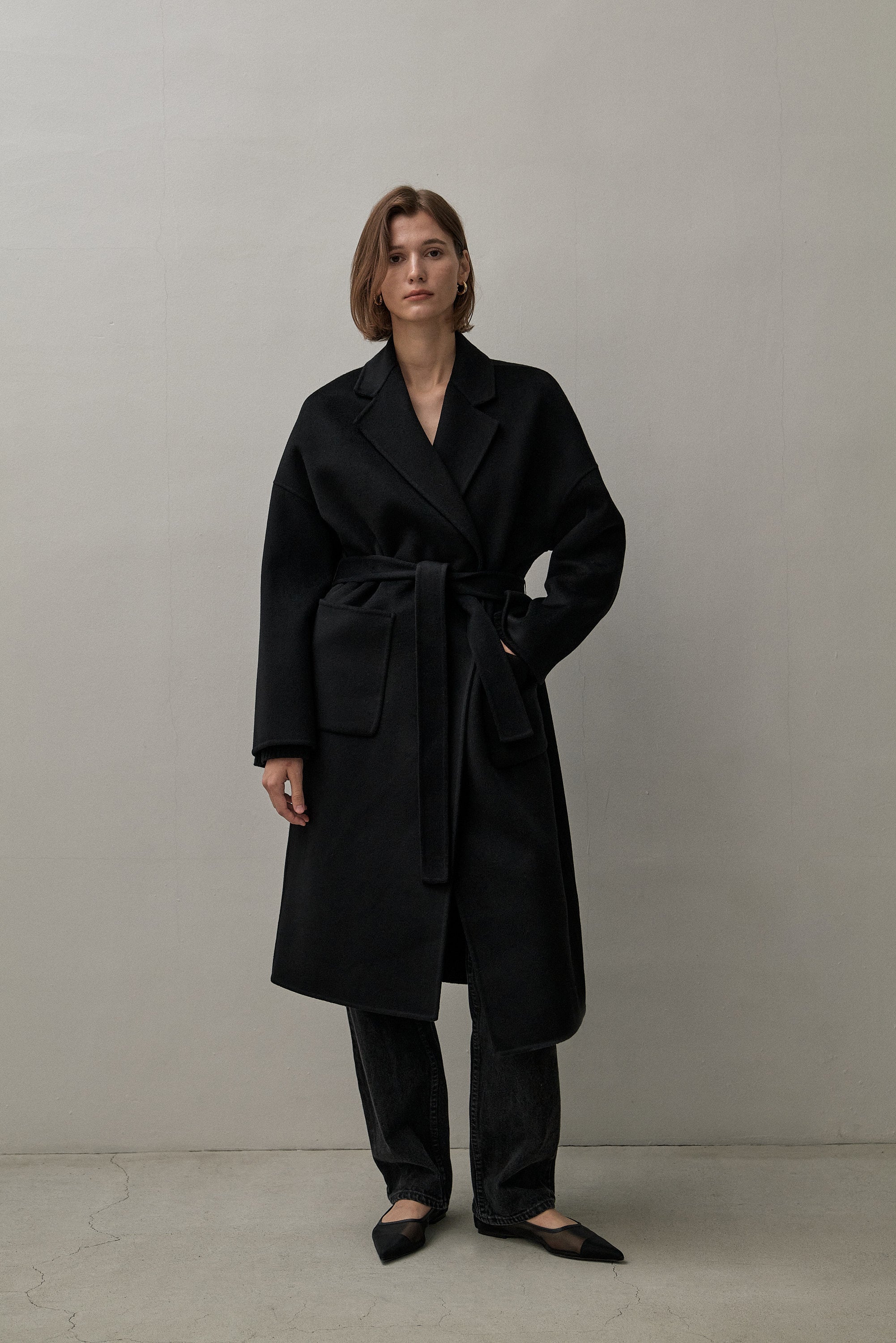 Our double faced coats are created with our signature blends of cashmere and superfine merino wool, sourced from Inner Mongolia. This cashmere is celebrated for its softness, warmth, and lightweight properties, making it an ideal choice for luxurious outerwear. Complementing the cashmere, our fine merino wool is known for its incredible softness and excellent thermal regulation, adding durability and resilience to the fabric, ensuring our coats maintain their shape and beauty over time.