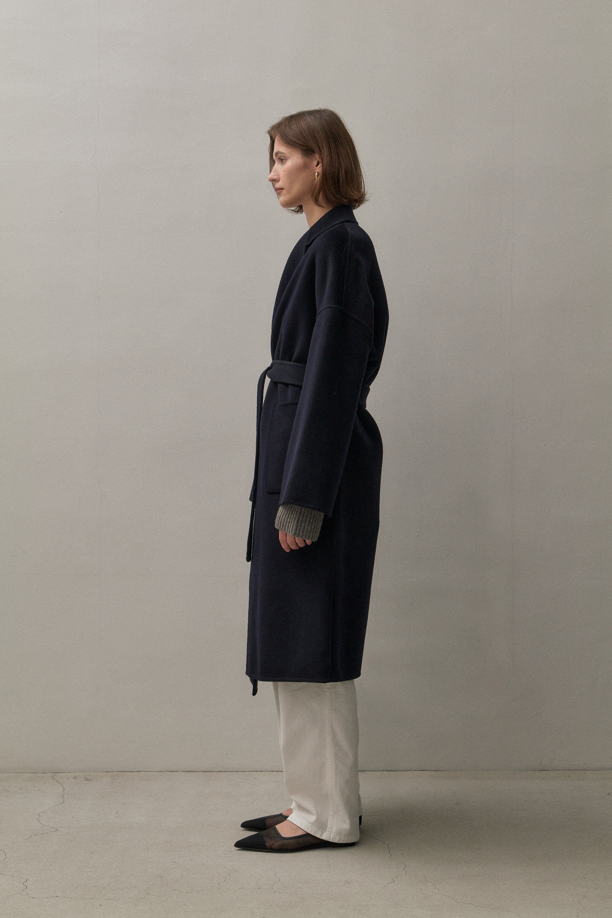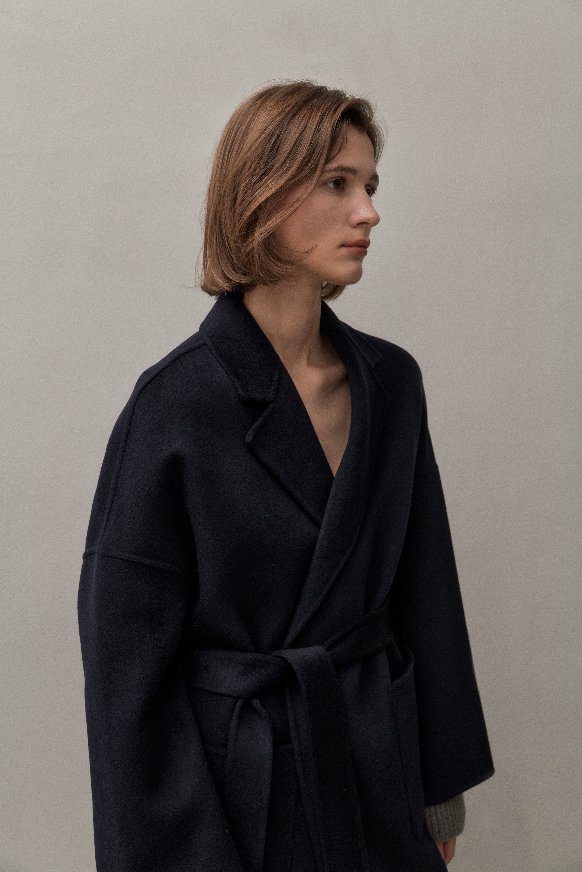 Our double faced coats are created with our signature blends of cashmere and superfine merino wool, sourced from Inner Mongolia. This cashmere is celebrated for its softness, warmth, and lightweight properties, making it an ideal choice for luxurious outerwear. Complementing the cashmere, our fine merino wool is known for its incredible softness and excellent thermal regulation, adding durability and resilience to the fabric, ensuring our coats maintain their shape and beauty over time.