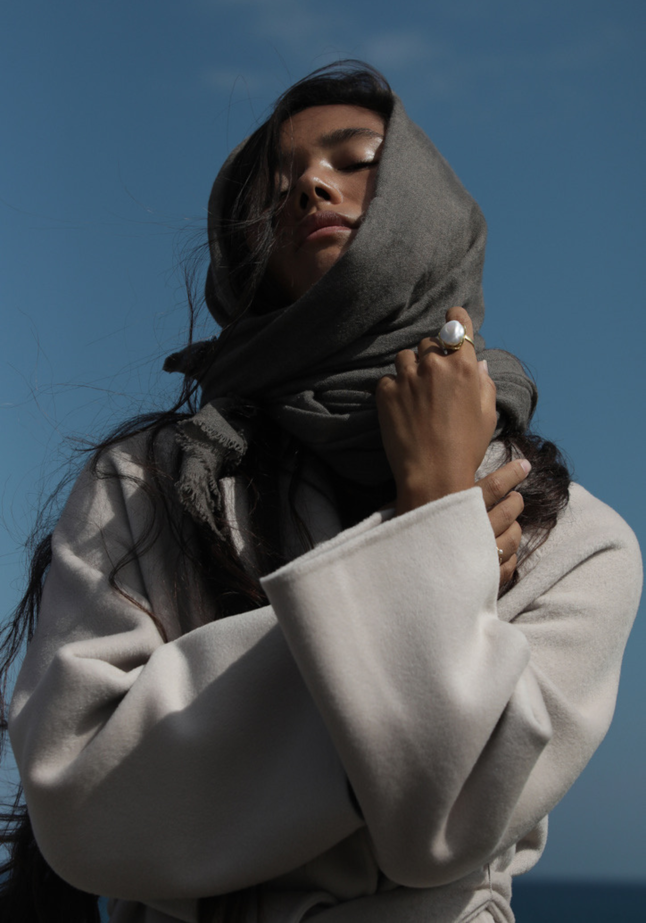 Add a touch of luxury to any outfit with The Cashmere Scarf, made with the finest royal cashmere. Generously sized, allowing it to be draped over the shoulders or wrapped around the neck. Its lightweight and breathable construction make it an ideal choice for transitional seasons or for layering with heavier outerwear.
