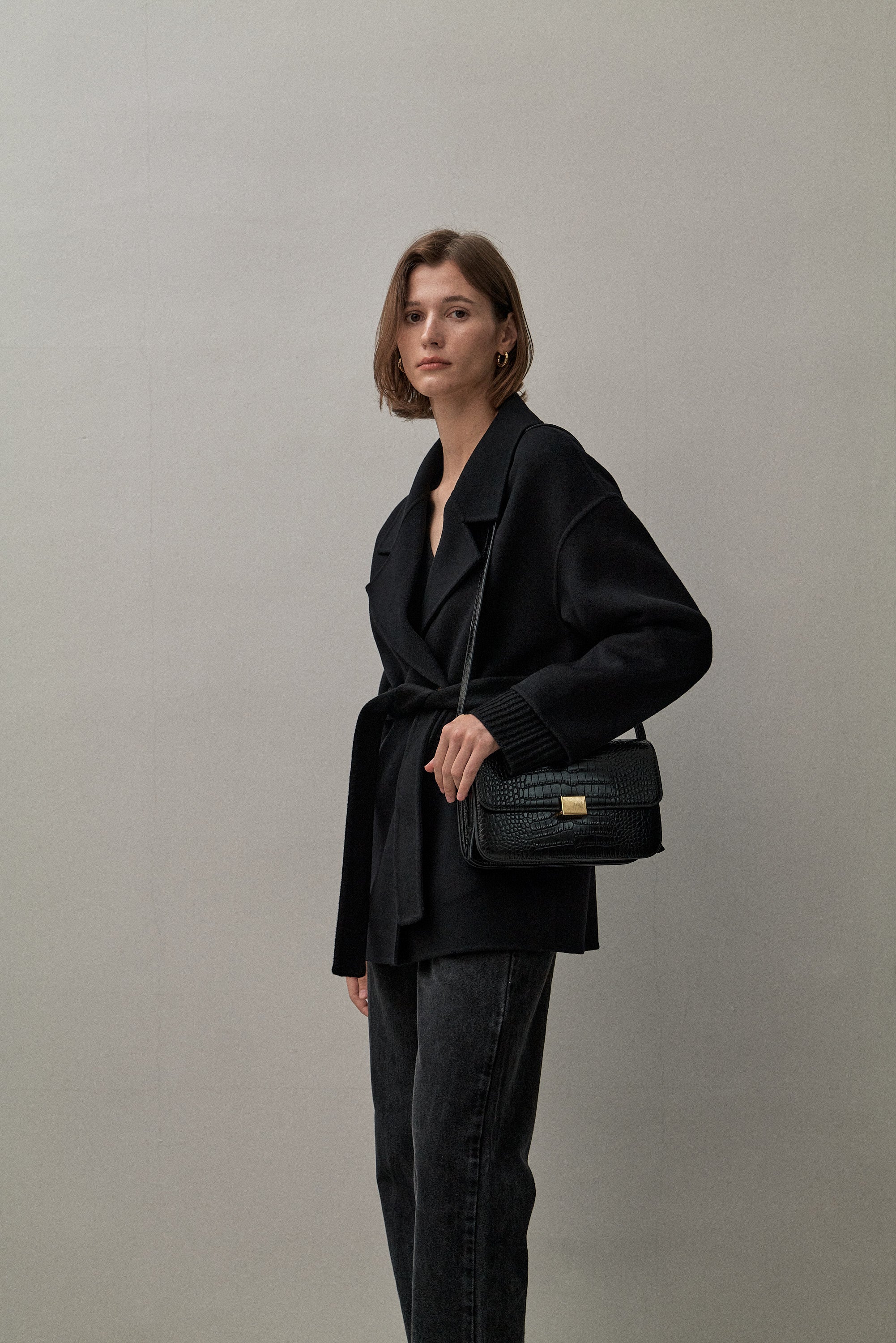 THE CLASSIC SHOULDER BAG - BLACK MOCK PRINT