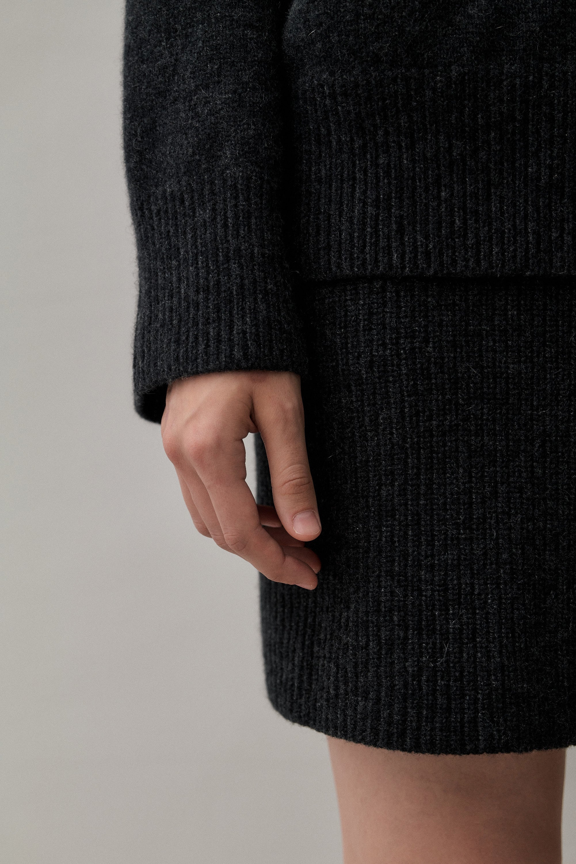 We use only Royal Cashmere for our knitwear. Grades of cashmere are often measured by the fibre length but we also grade by the diameter. Meaning that we require super fine and long fibres to be spun into yarn. We work with Consinee, China's leading vertical mill in cashmere production which supplies to many luxury brands globally. Vertical mils are efficient but also ensure that every stage of production is executed with care and transparency.