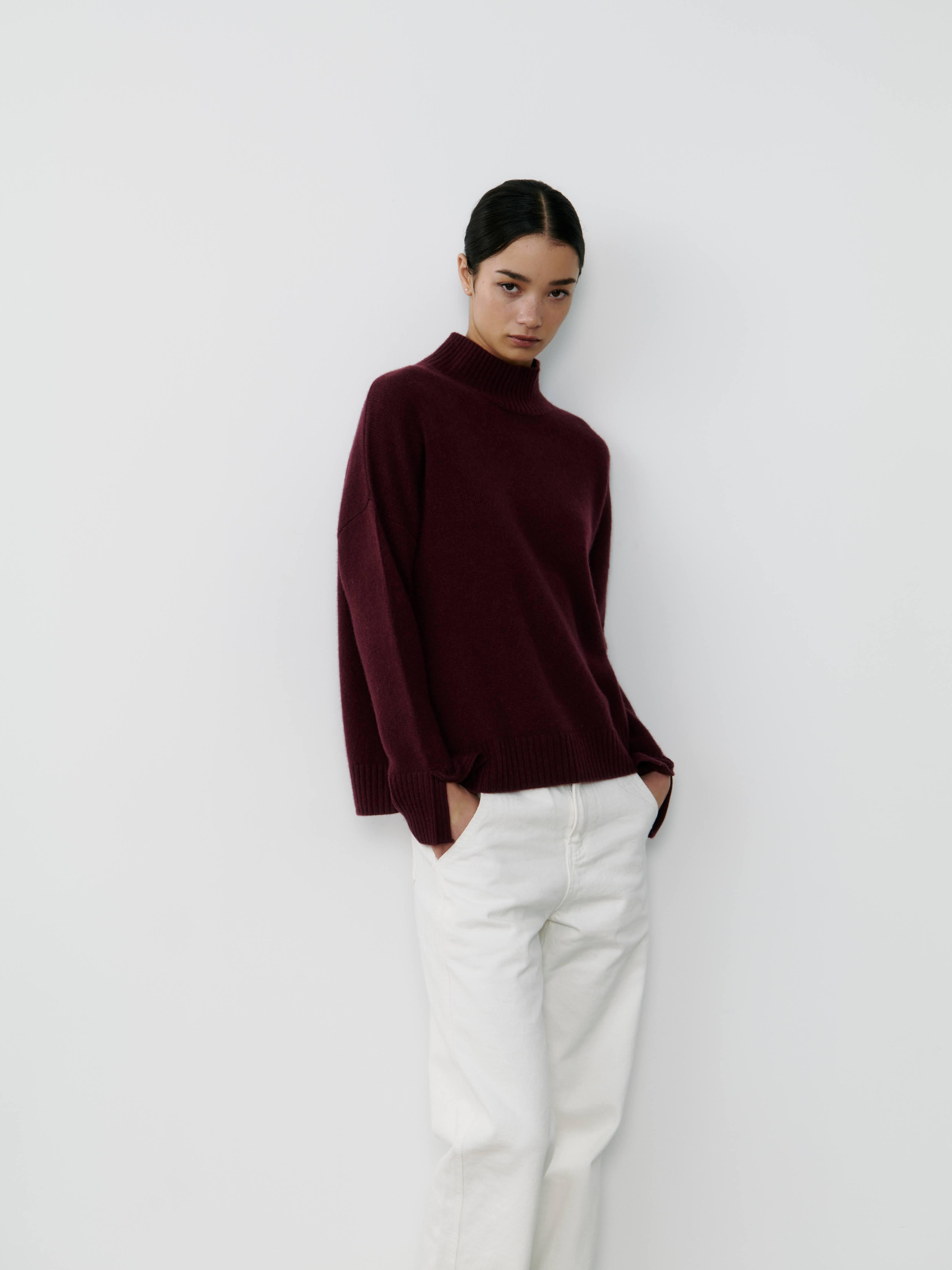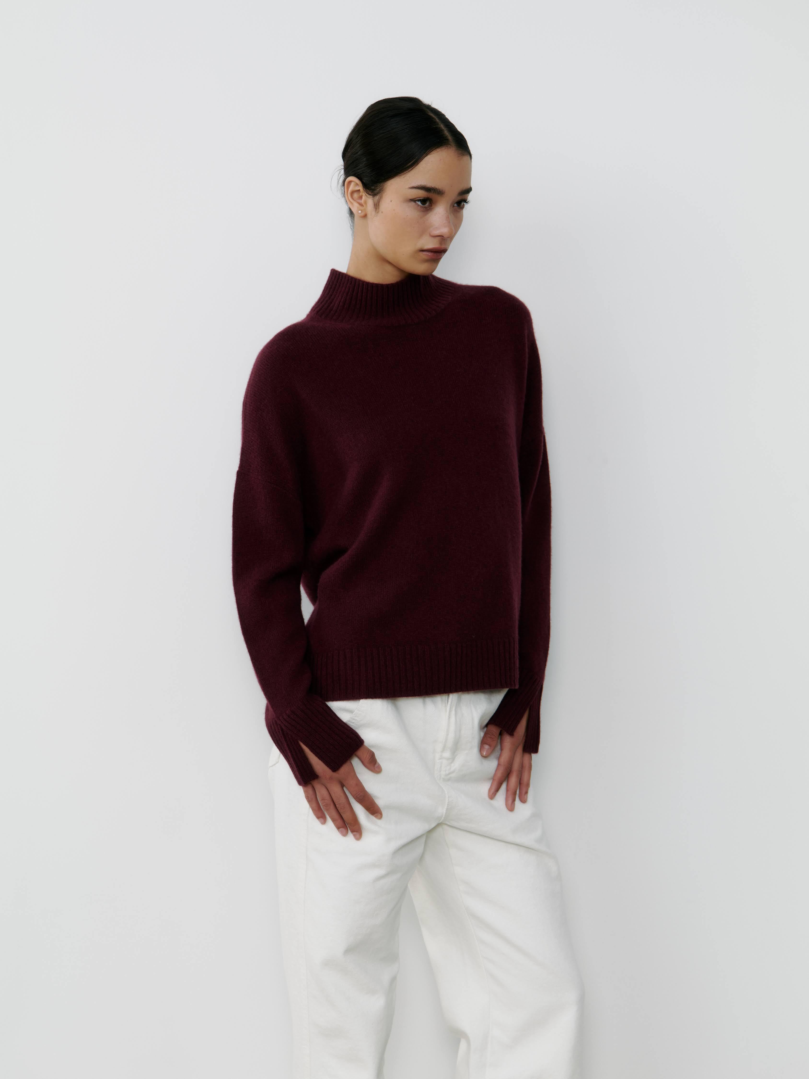 With a relaxed silhouette and split sleeves, The Mock Neck sweater is the most versatile piece to take you from casual to chic. This comfortable knit will be your ultimate staple this season.