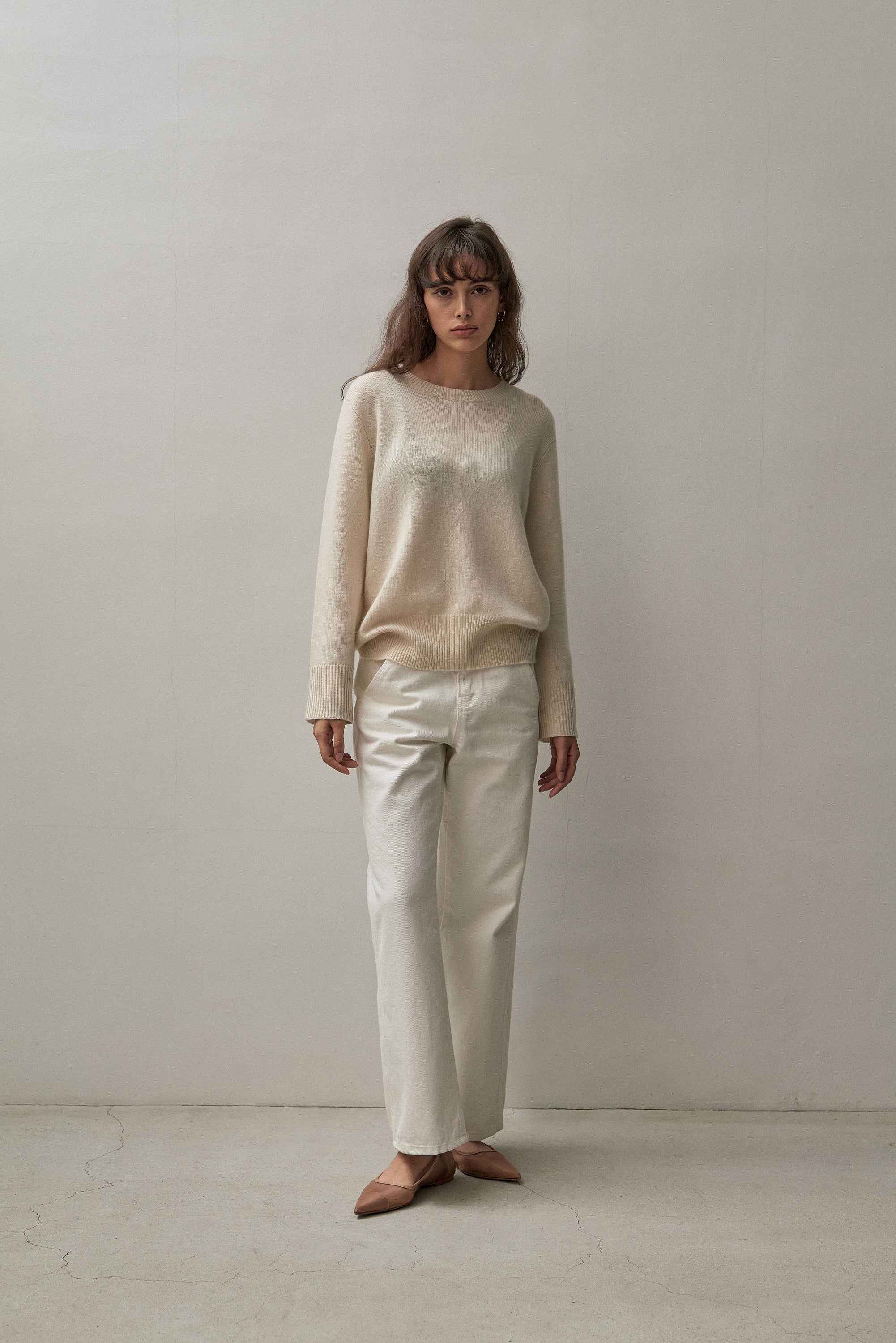There is nothing more essential than a classic cashmere crew knit. Designed with a relaxed fit, bell sleeves and made with our signature royal cashmere this is a beautiful piece you can wear layered over denim or tucked into a silk skirt.