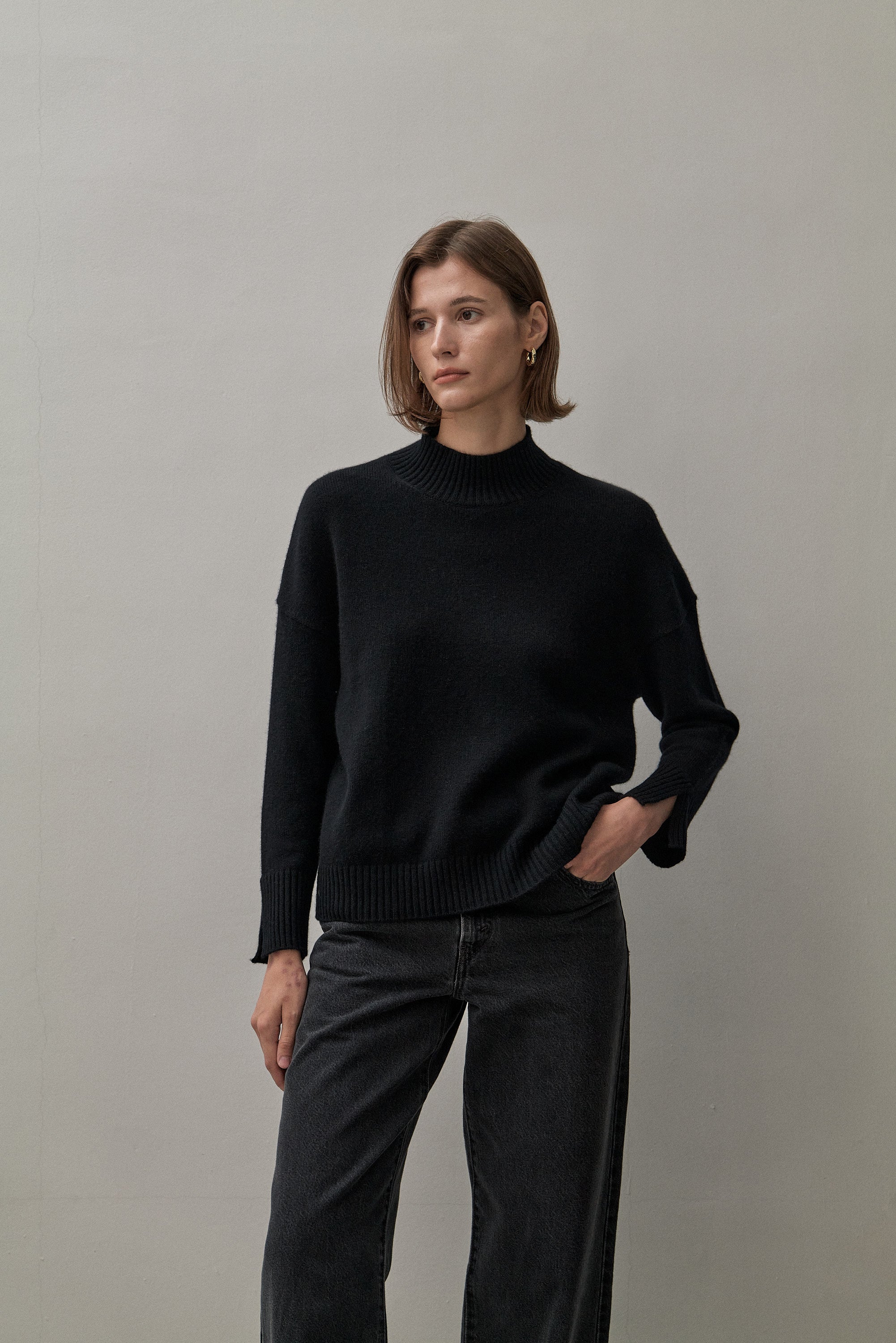 With a relaxed silhouette and split sleeves, The Mock Neck sweater is the most versatile piece to take you from casual to chic. This comfortable knit will be your ultimate staple this season.