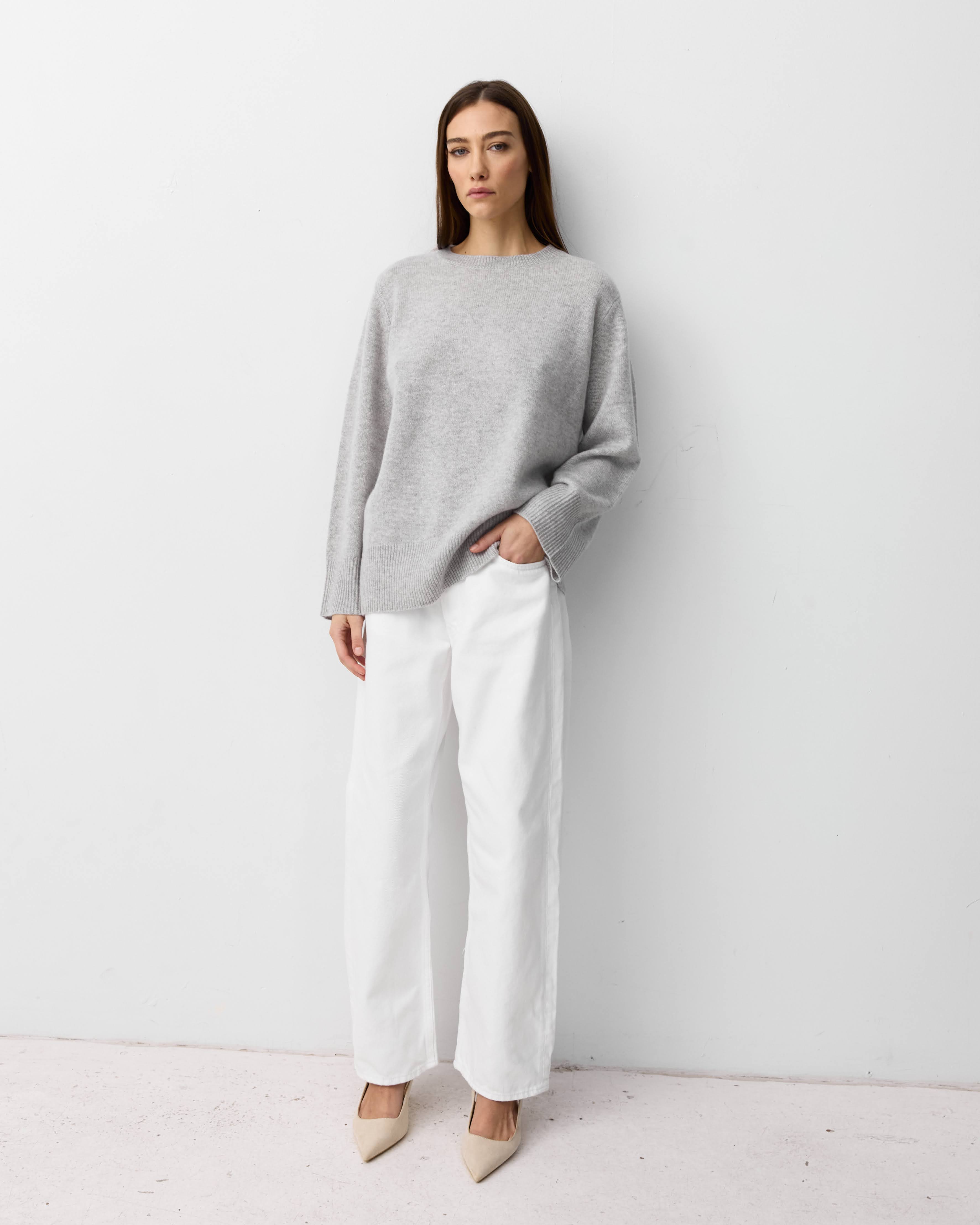 There is nothing more essential than a classic cashmere crew knit. Designed with a relaxed fit, bell sleeves and made with our signature royal cashmere this is a beautiful piece you can wear layered over denim or tucked into a silk skirt.
