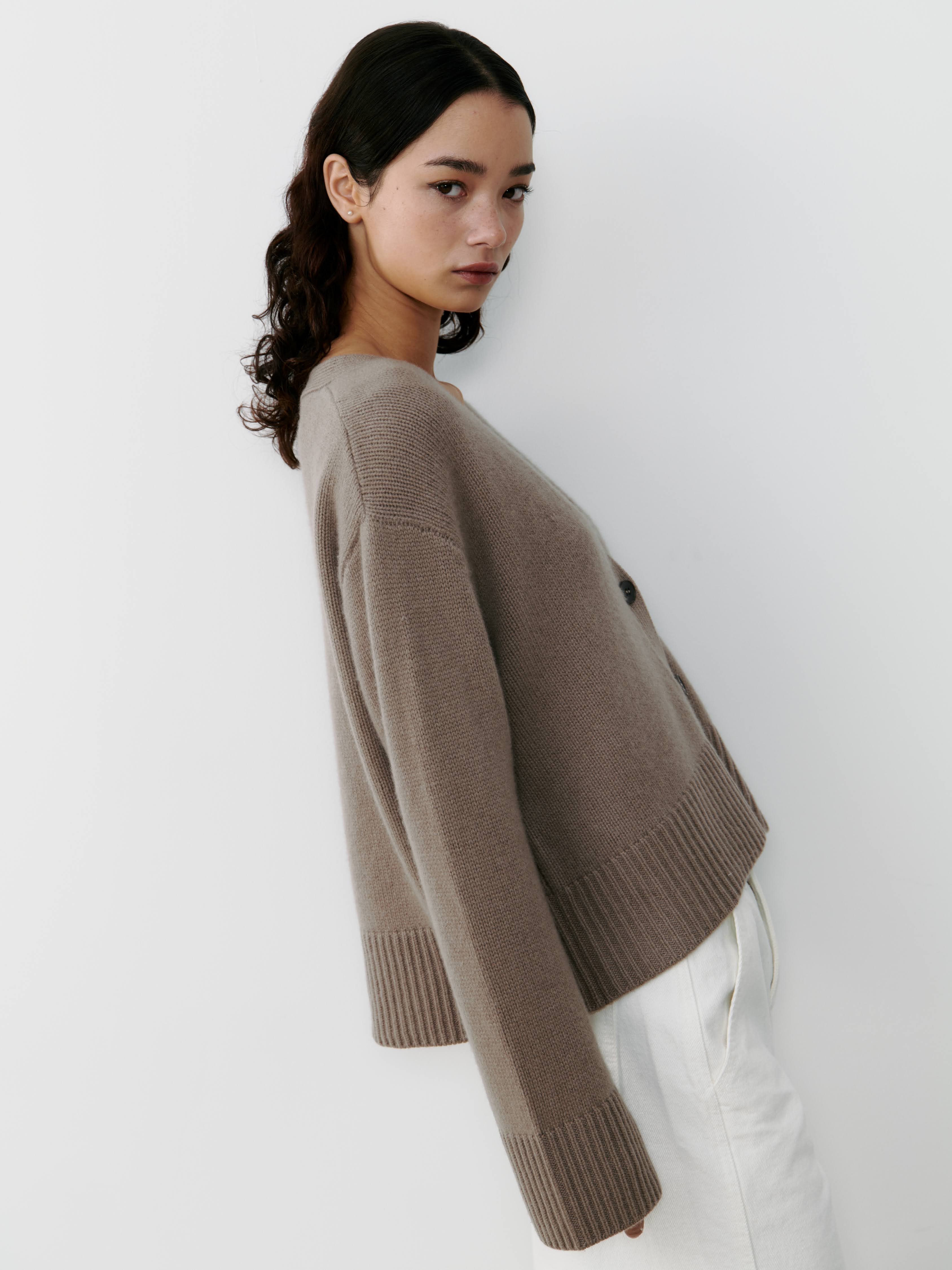 One of our favourite pieces in our cashmere collection, the Classic Cardigan is the perfect transeasonal staple for your wardrobe. With corzo buttons, a 100% Cashmere composition and wider sleeves, this relaxed silhouette makes layering effortless.