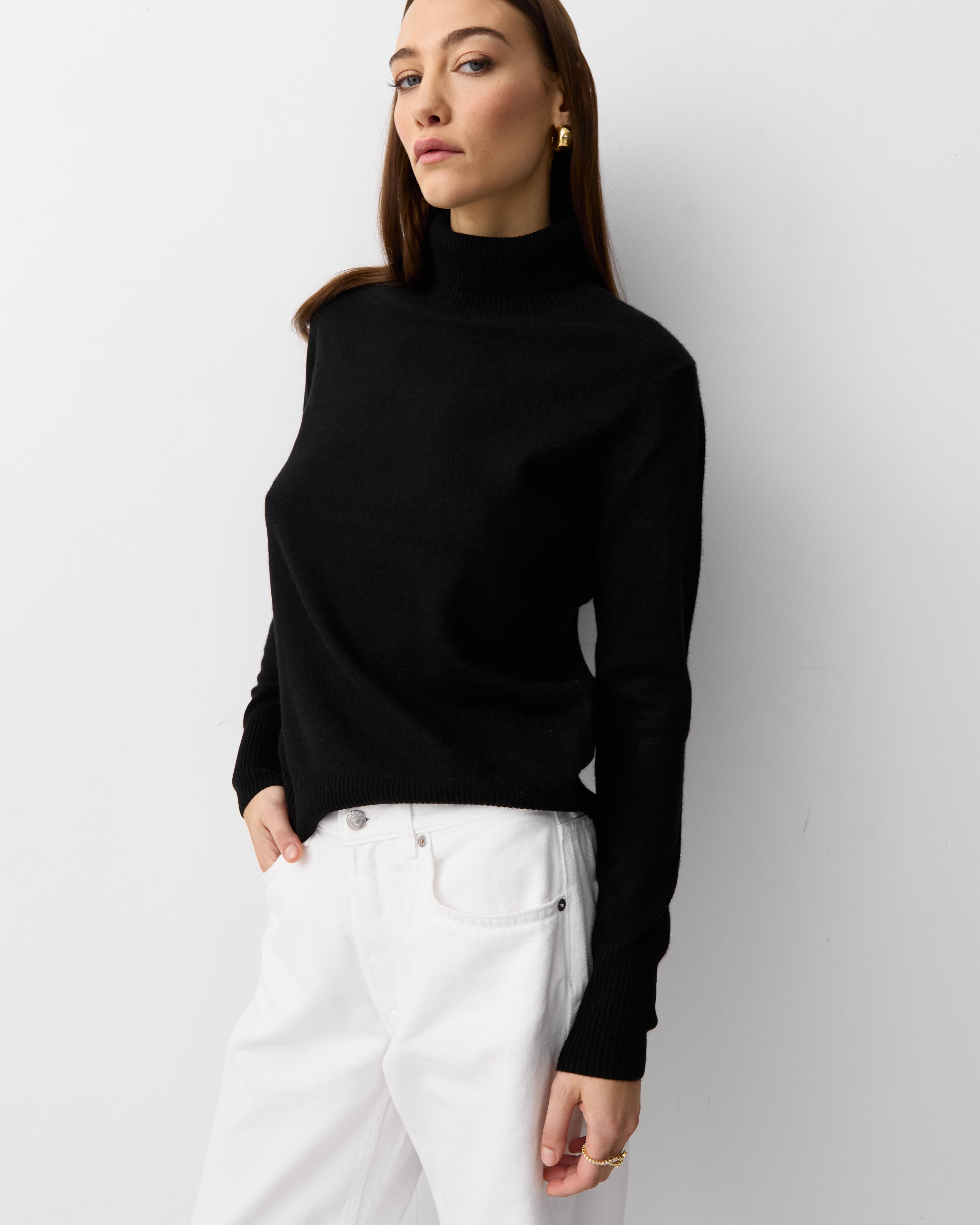 Our new reworked Classic Turtleneck in pure cashmere features a sophisticated high collar and ribbed details. The versatile design makes it easy to dress up or down, making it a great addition to any wardrobe. Choose from our range of classic colours.